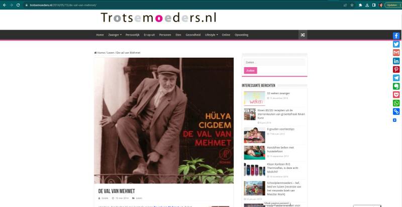 Ik vind De val van Mehmet een absolute aanrader. Het is enerzijds een prachtige en goed geschreven roman die van begin tot eind blijft boeien. Want de verklaring voor de titel, echt die kan je pas op de laatste pagina’s van het boek echt doorgronden. Anderzijds vond ik het een leerzame en boeiende roman, waarin je meer te weten komt over het leven in de jaren ’60 en ’70 van de mensen die als gastarbeider naar Nederland (of bijvoorbeeld Duitsland) zijn gekomen. Ik zat vroeger op de basisschool bij kinderen van hen in de klas, maar dat betekent helaas niet dat ik daardoor überhaupt iets over hun leven en achtergrond te weten ben gekomen. In die zin is het boek nog wel confronterend ook.